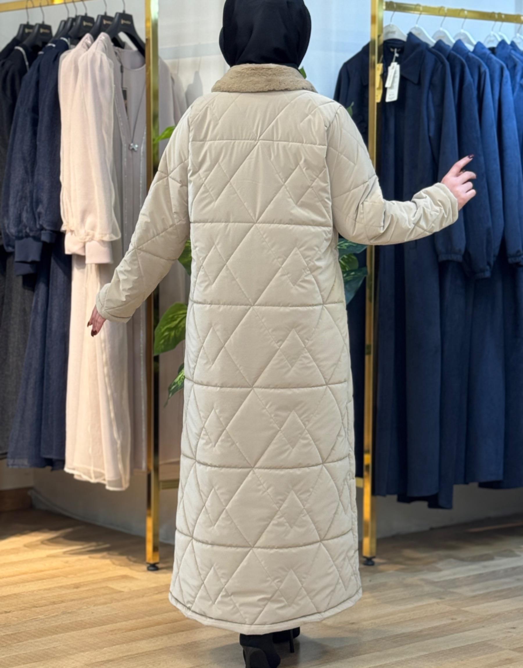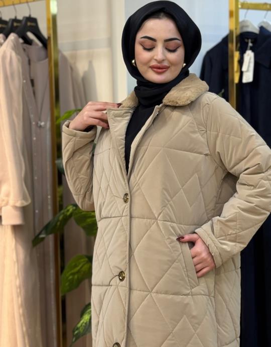 Bayan Bej Lake Kürklü Kapitone Mont 4015 | Nuripeğim