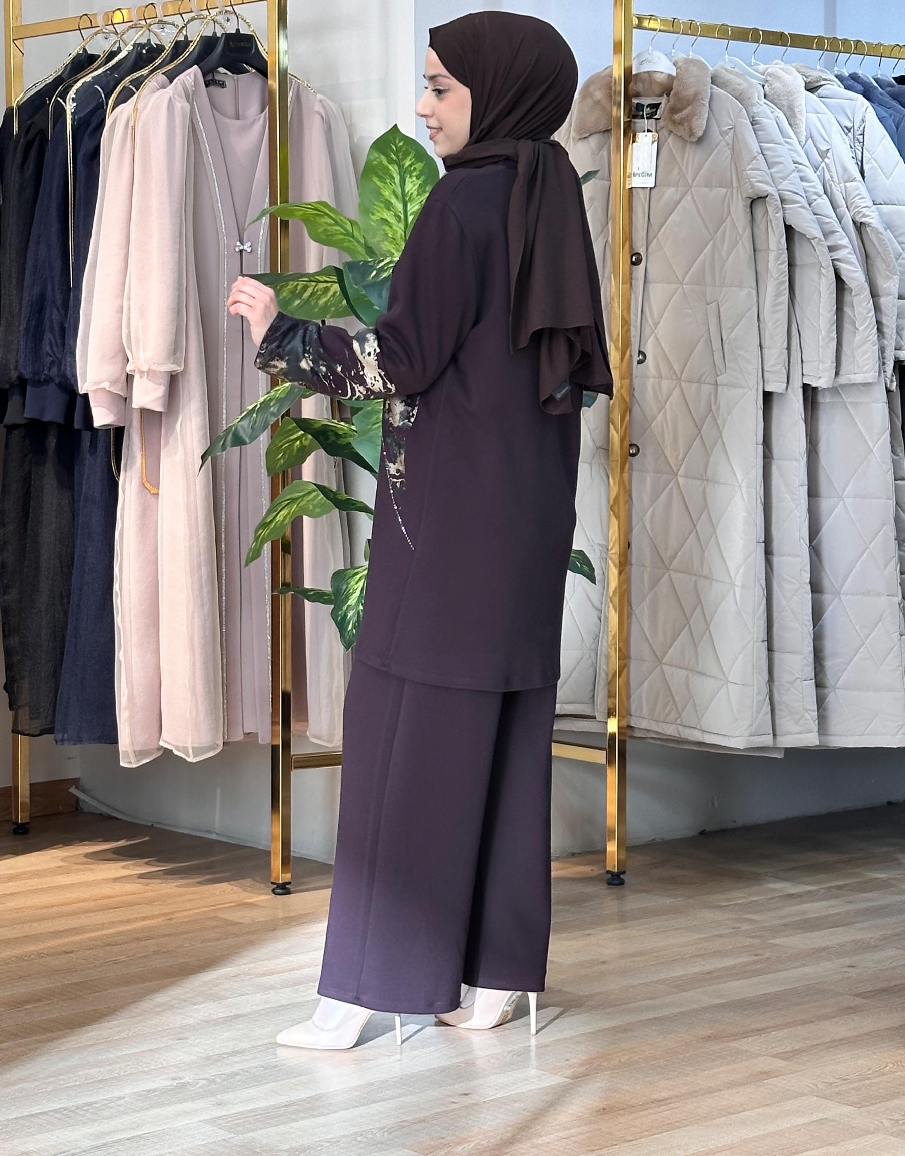 Bayan Kahve 7401 Taşlı Desen Takım Oyso | Nuripeğim