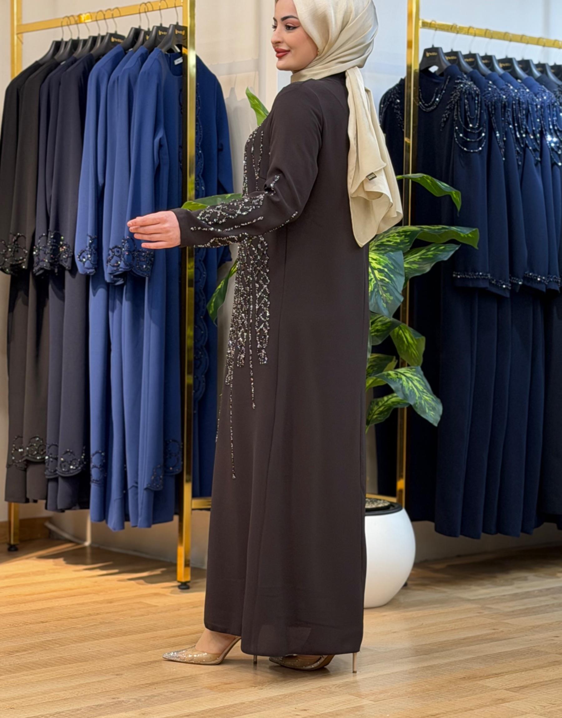 Bayan Kahverengi 7522 Dökme Taş Elbise | Nuripeğim