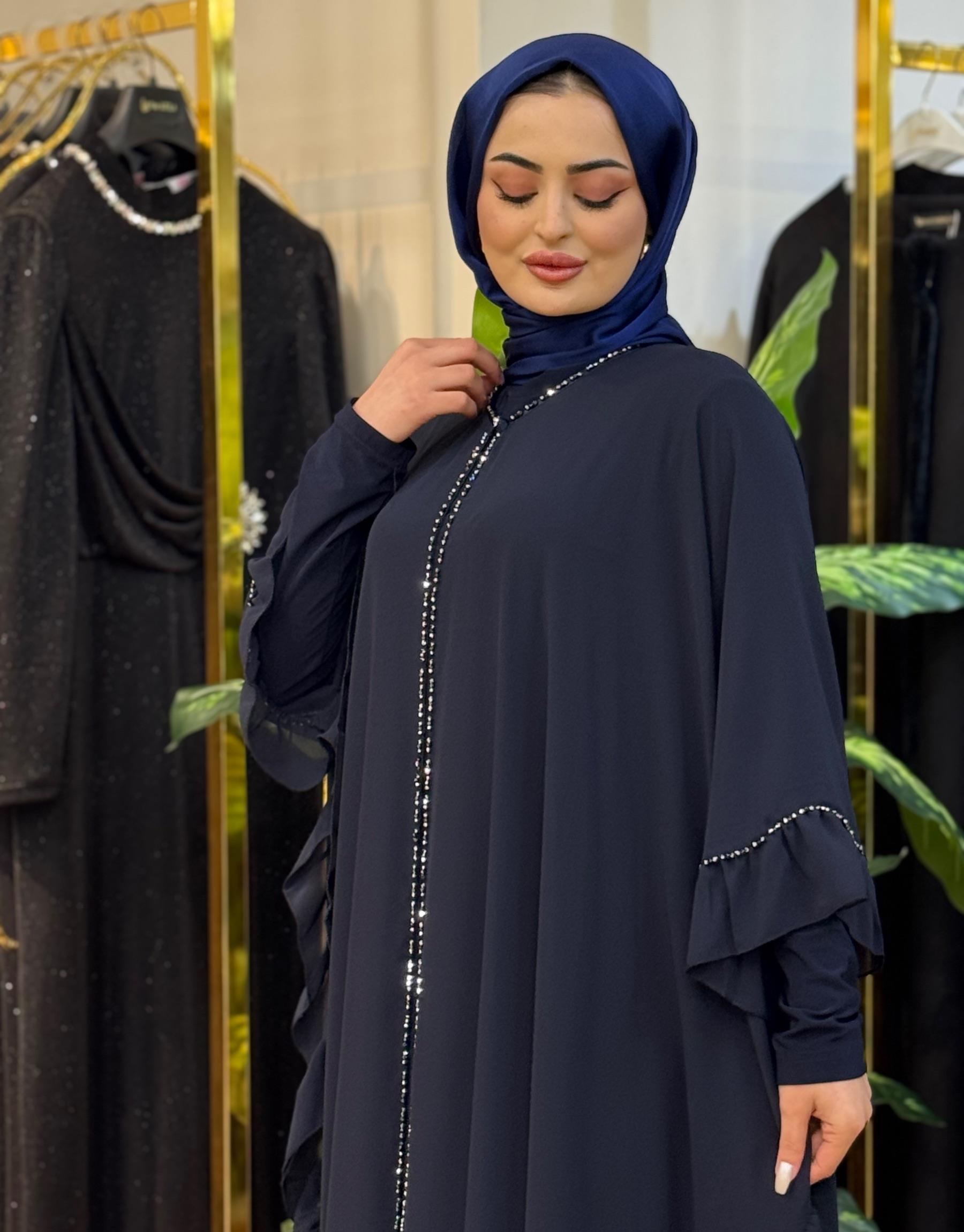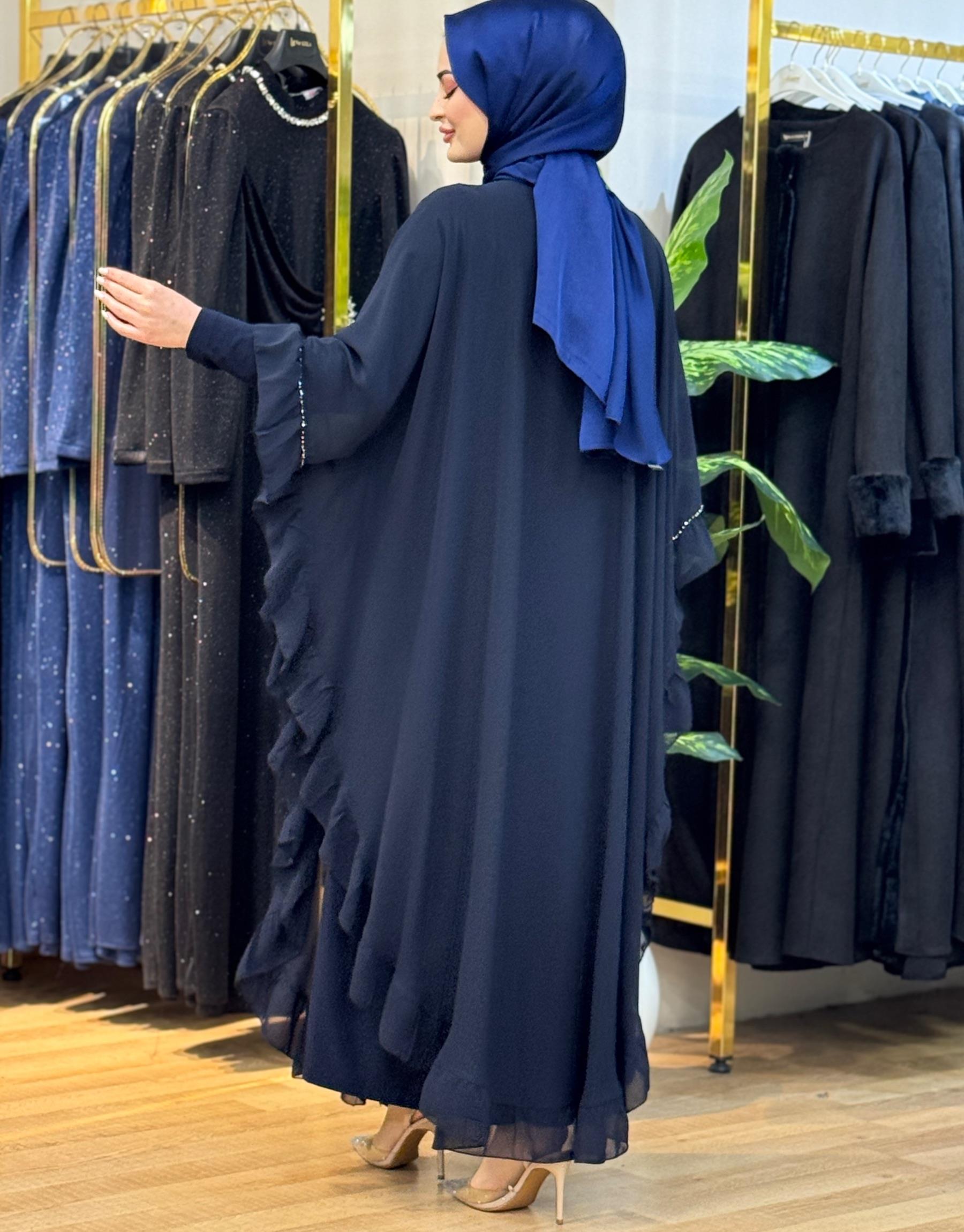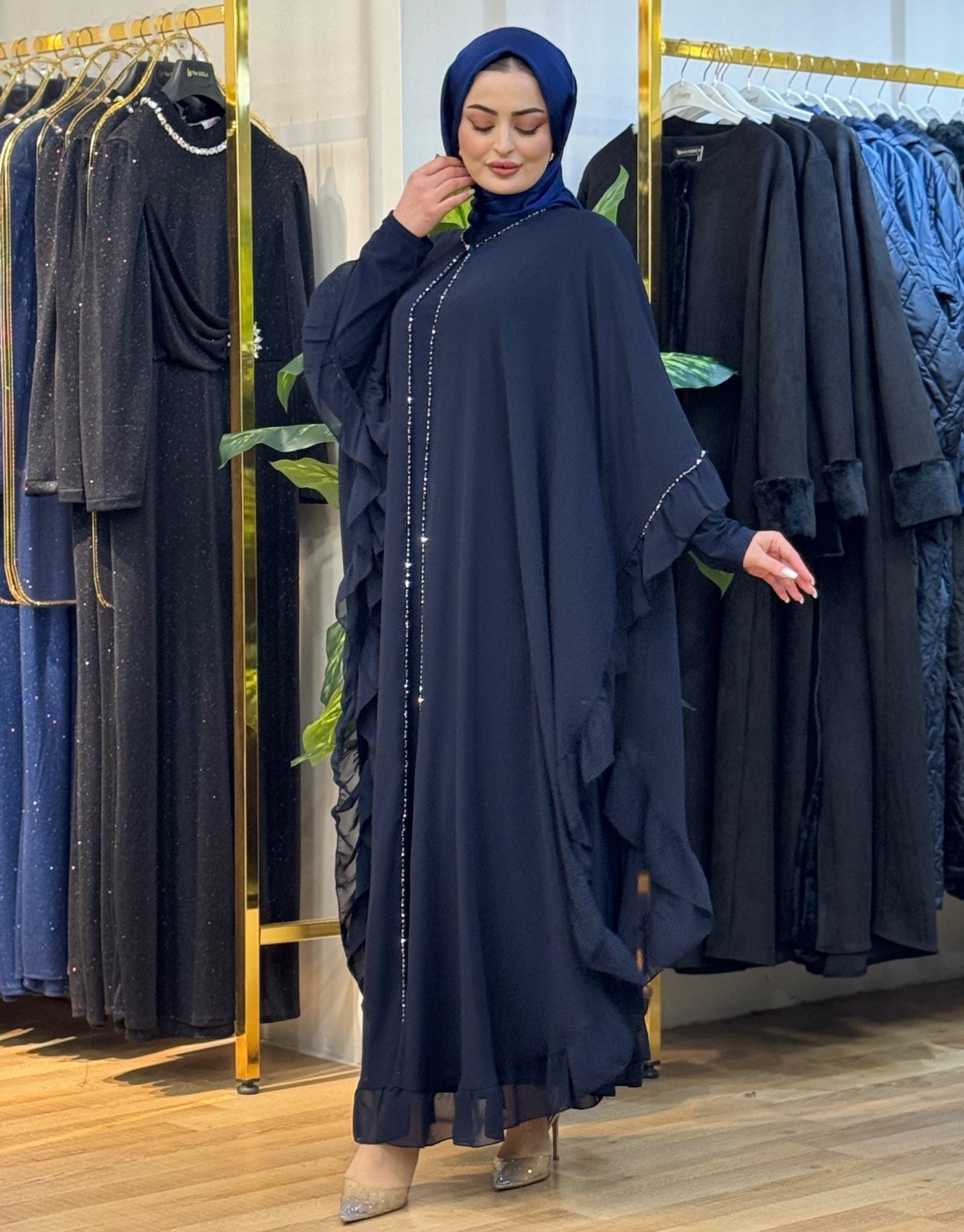 Bayan Lacivert 8233 Hanne elde taş işleme pelerin iç elbise dahil değildir | Nuripeğim
