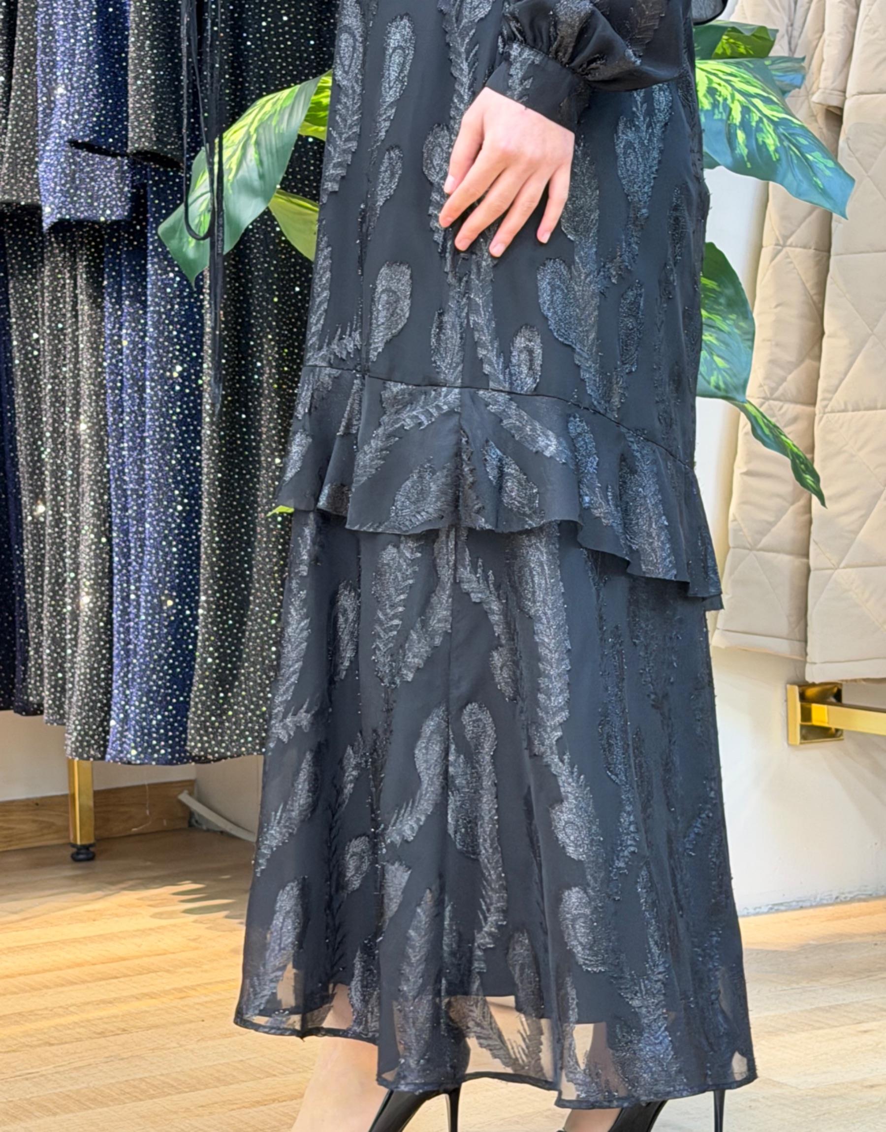 Bayan Siyah 1206 Organze Dantel Elbise | Nuripeğim