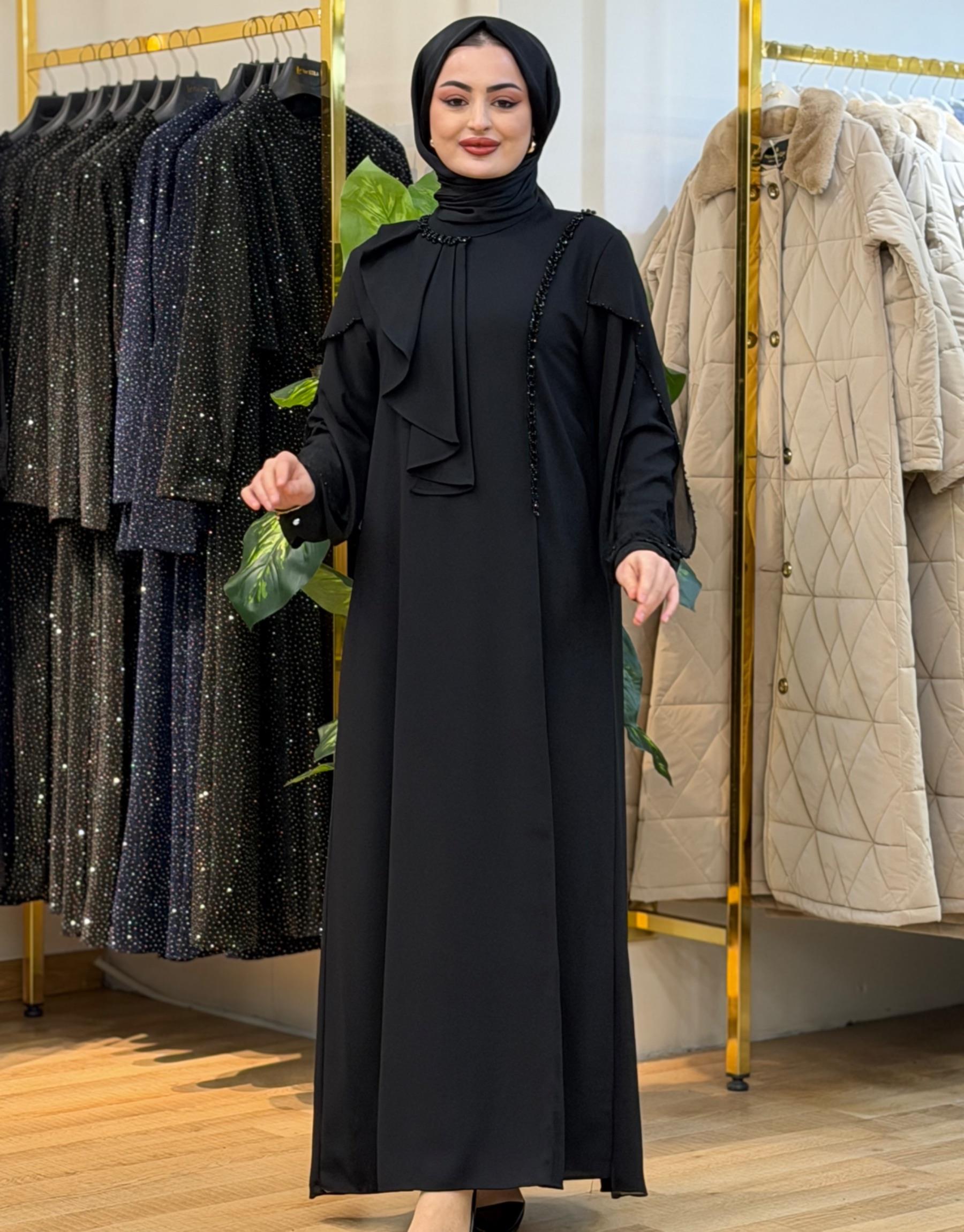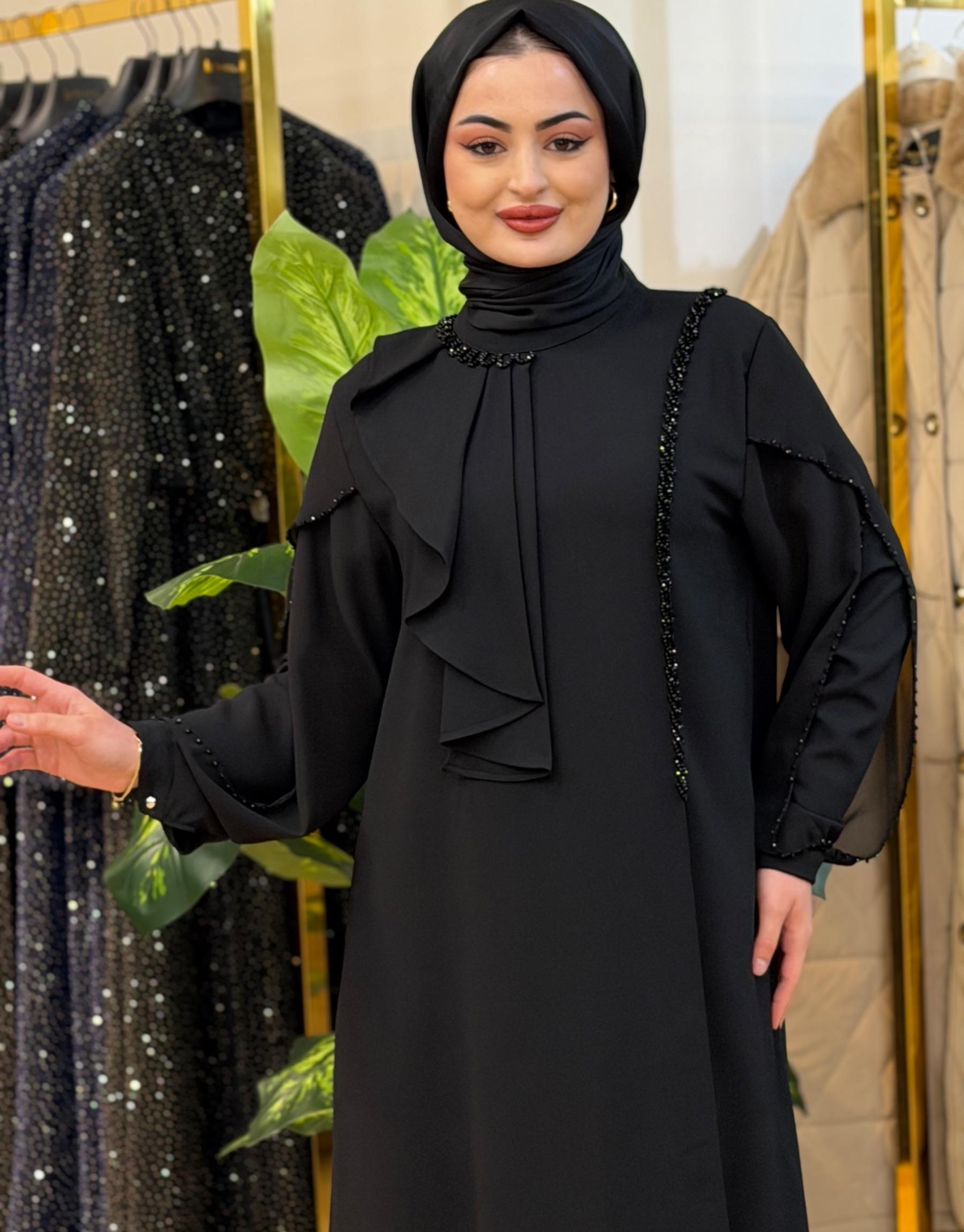 Bayan Siyah 7500 krep taşlı elbise | Nuripeğim
