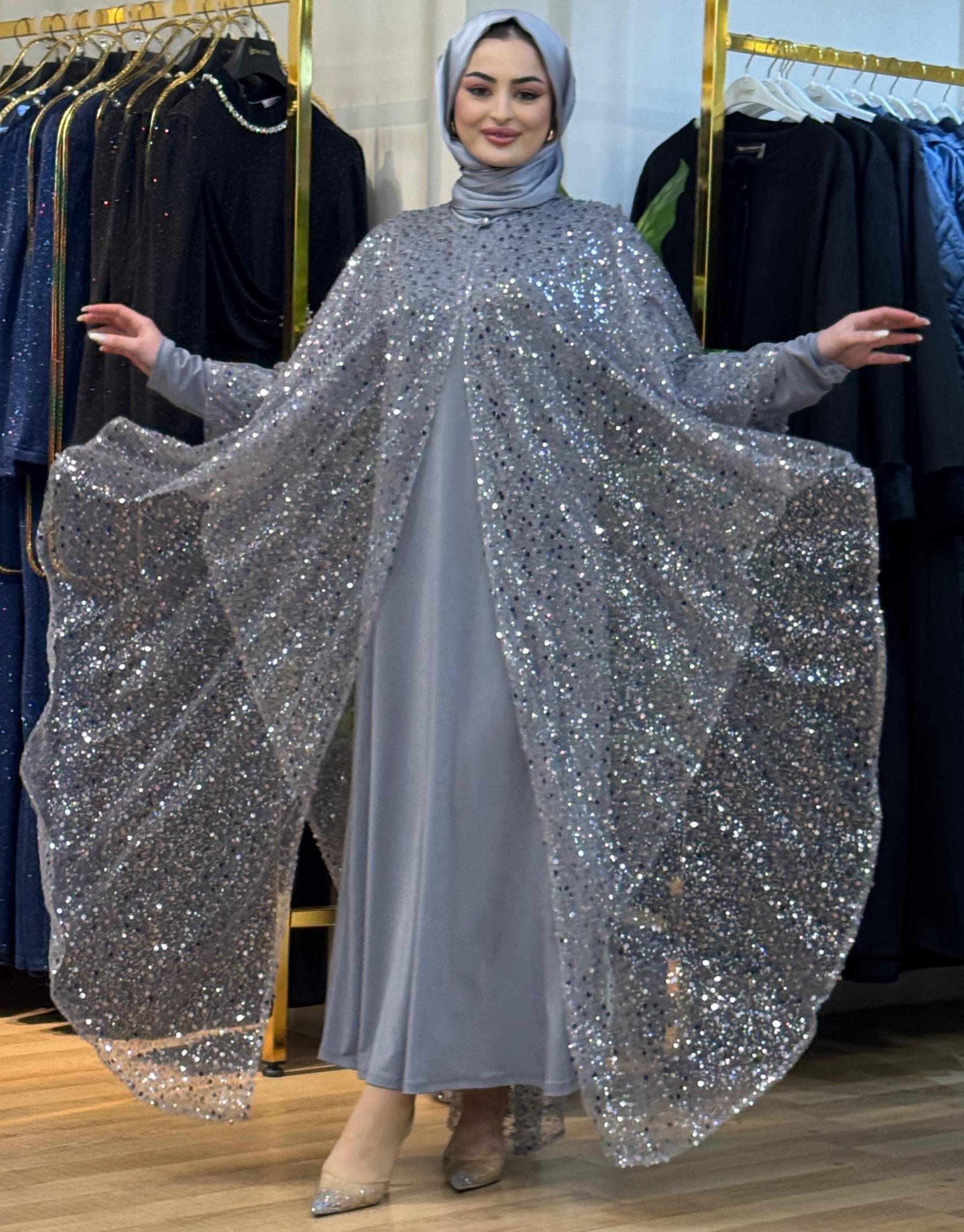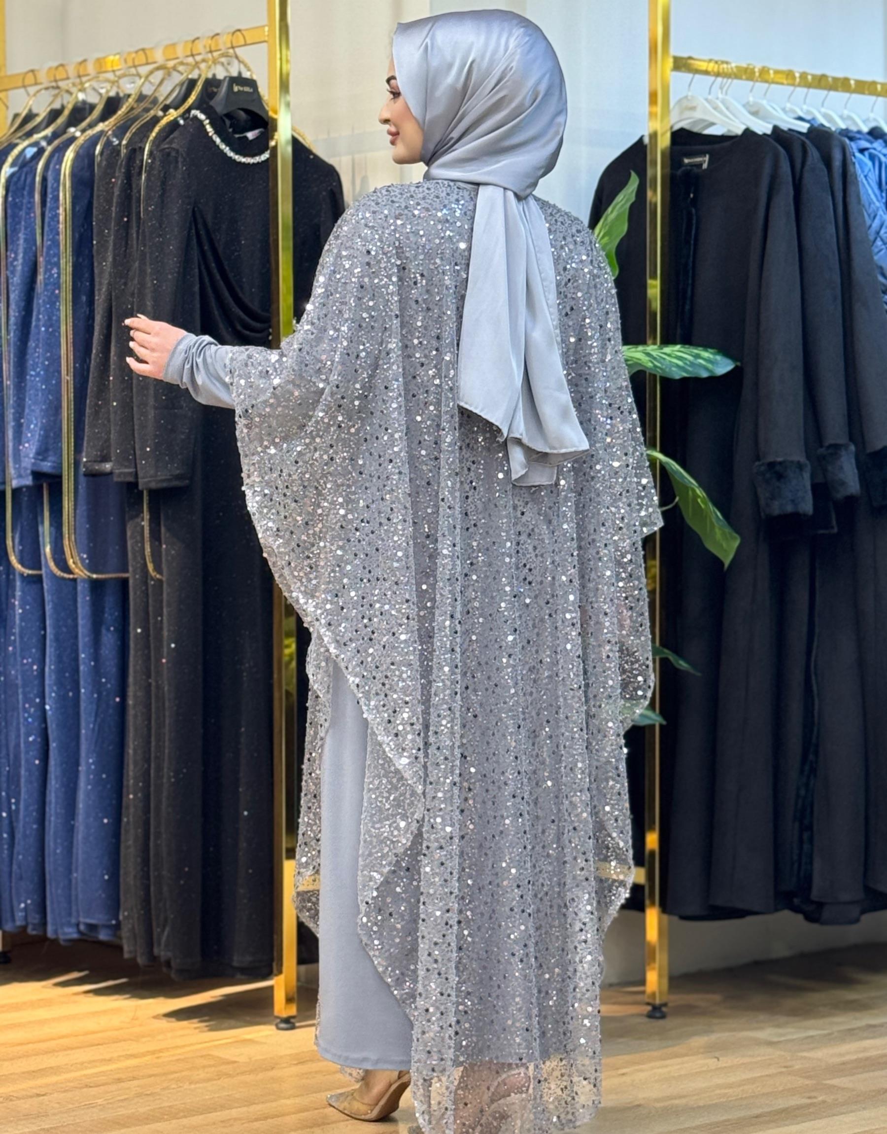 Bayan Gri Pul payet kasnak işi Pelerin. | Nuripeğim