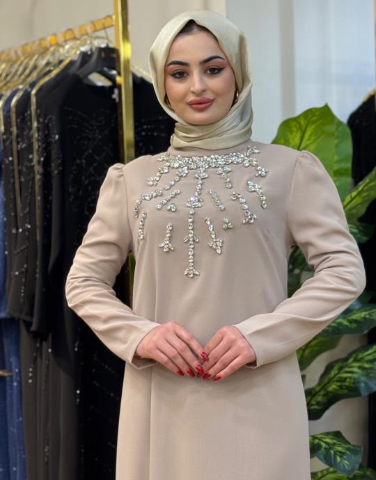 7402 Taşlı Elbise Kahve