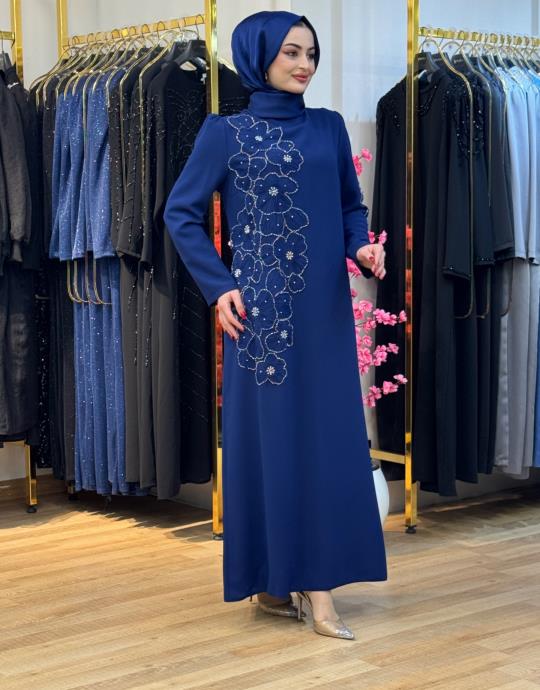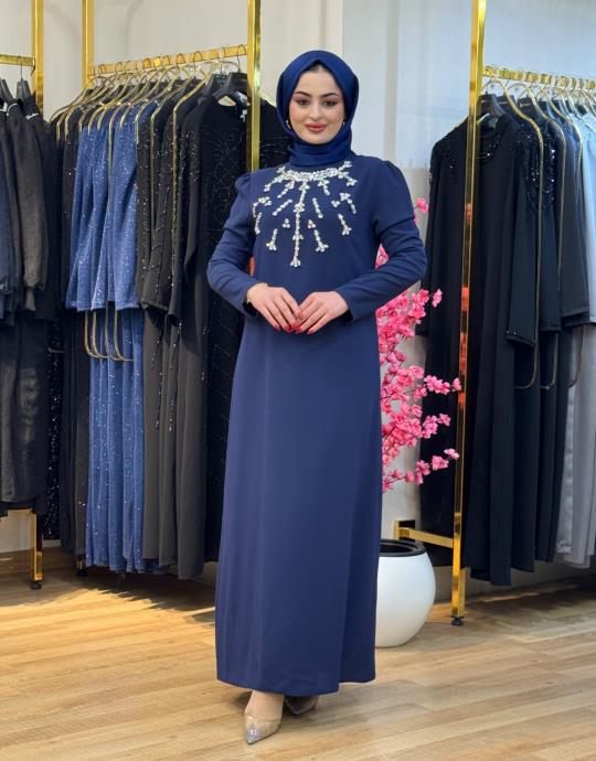 7402 Taşlı Elbise Lacivert
