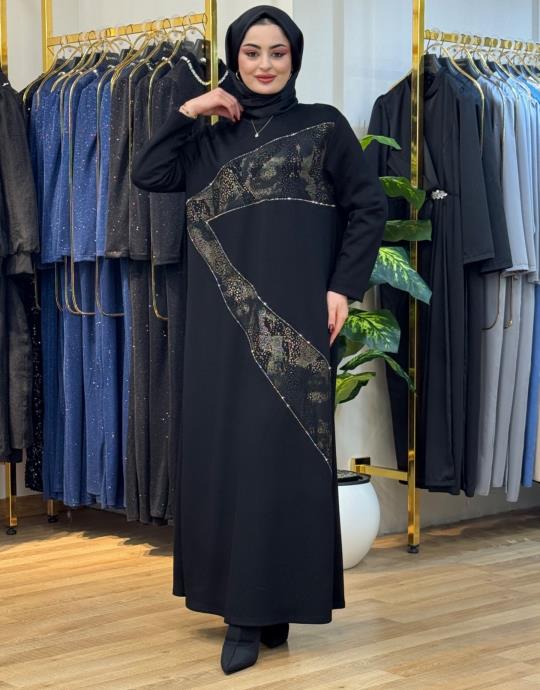 7402 Taşlı Elbise Siyah