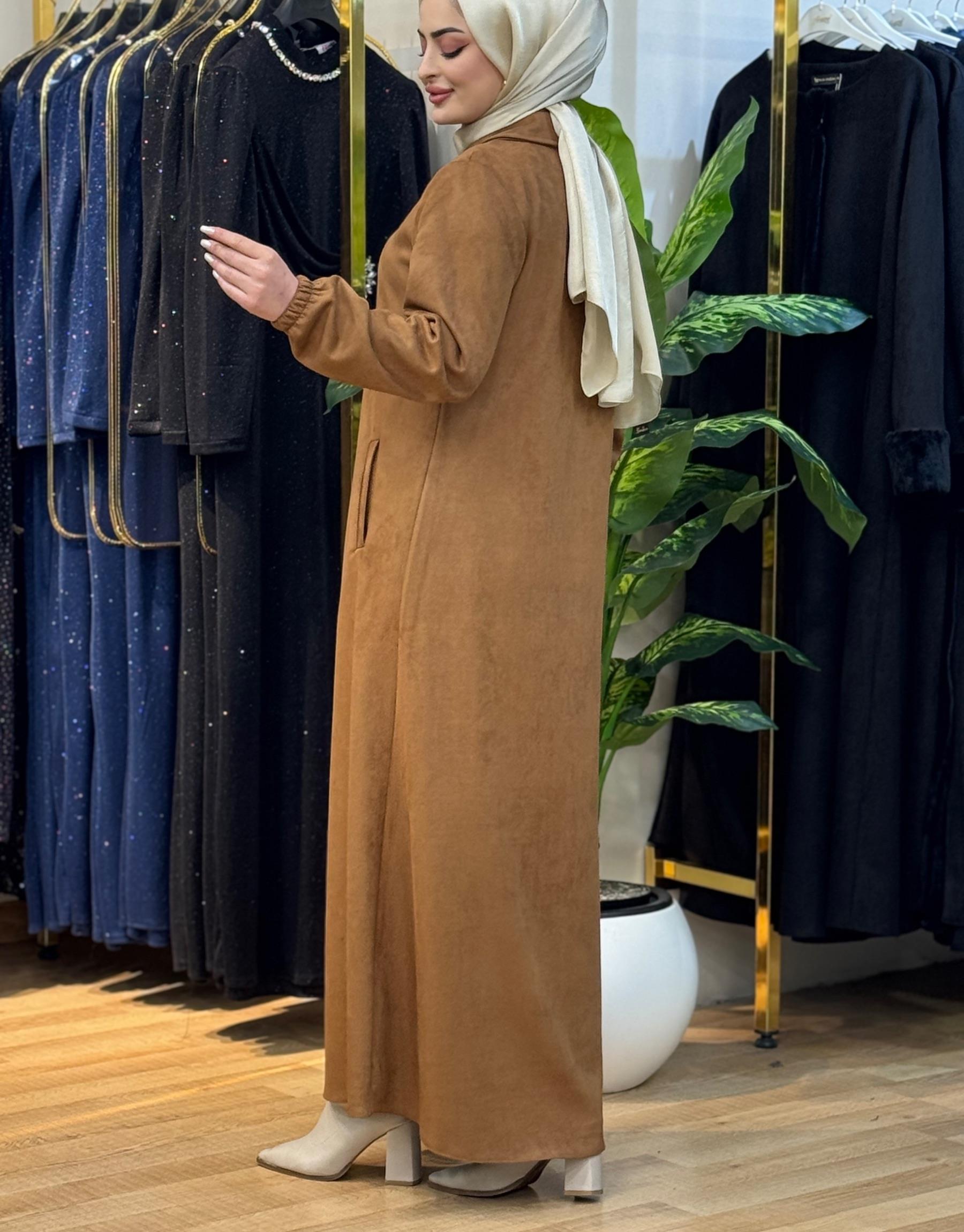 Bayan Taba 4012 Çiçek Aksesuarlı Nubuk ferace | Nuripeğim